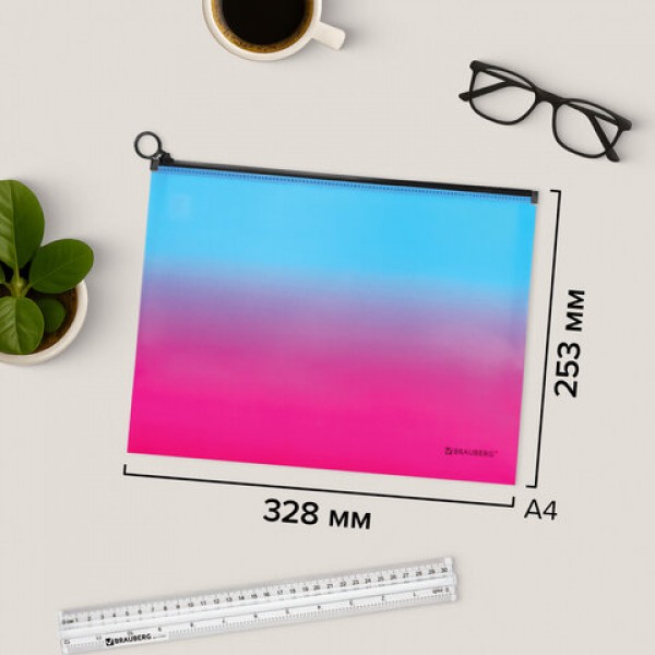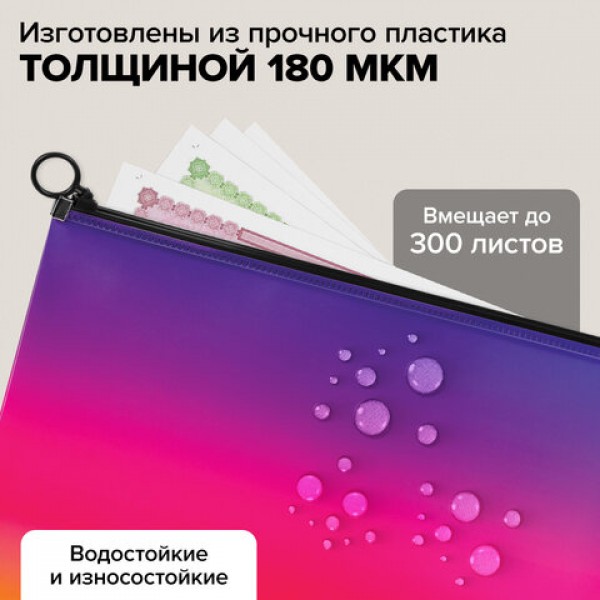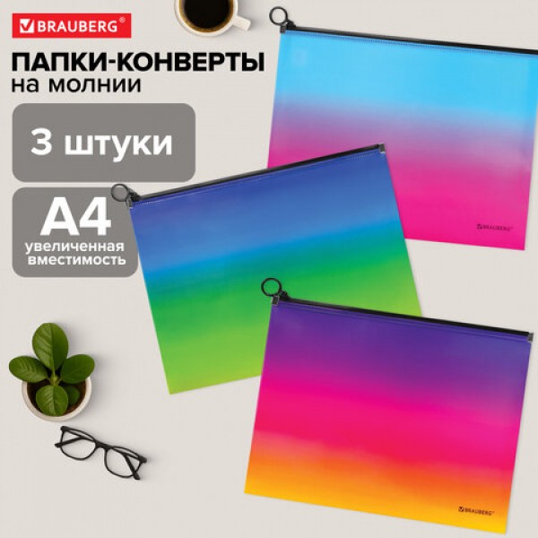Папка-конверт расширяющаяся СУПЕР КОМПЛЕКТ 3 ШТ. на молнии BRAUBERG 'Grade', А4 градиент 0,18 мм, 271969