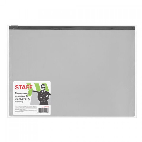 Папка-конверт СЕКЬЮРИТИ на молнии А4 (230х333 мм), ПВХ, непрозрачная, серая, STAFF, 274078