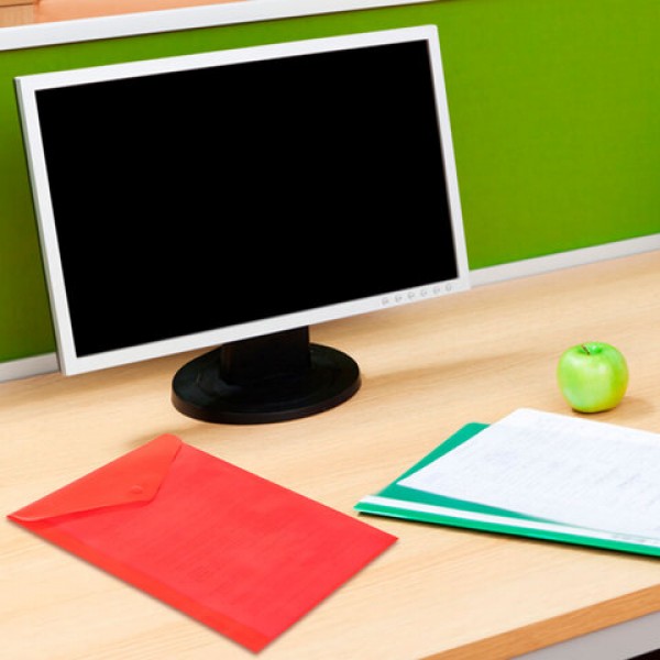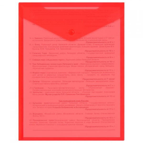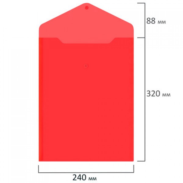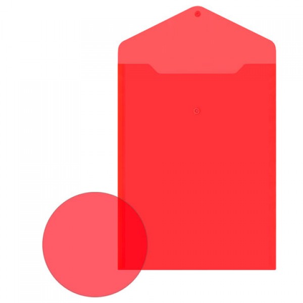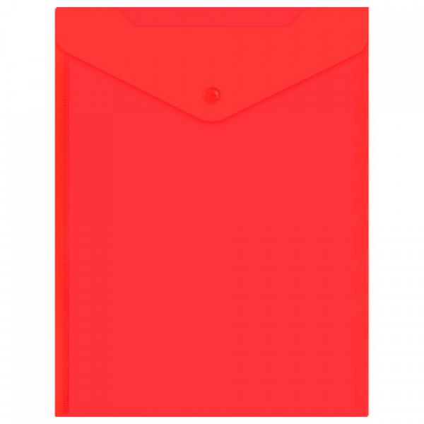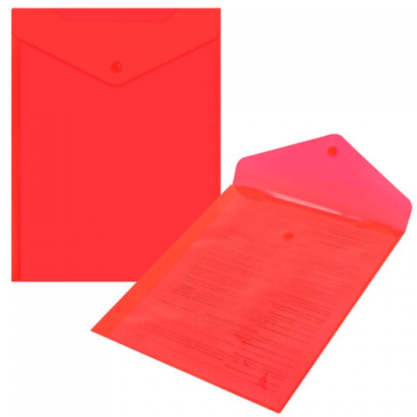 Папка-конверт с кнопкой прозрачная А4 BRAUBERG UNIVERSAL, вертикальная, красная, 0,15 мм, 273077