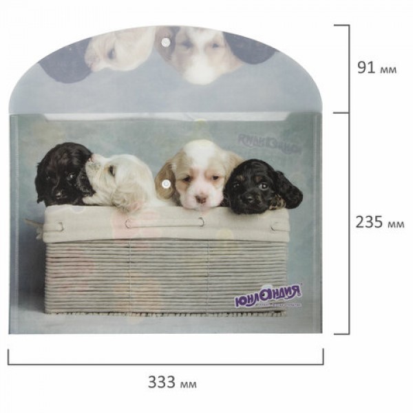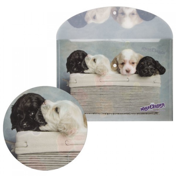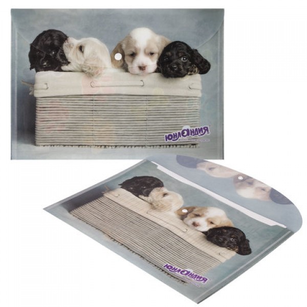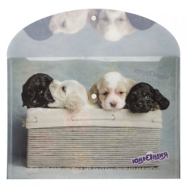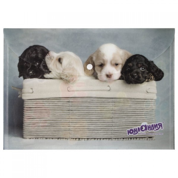 Папка-конверт с кнопкой ЮНЛАНДИЯ 'Щенки', А4, 160 мкм, до 100 листов, цветная печать, 228050