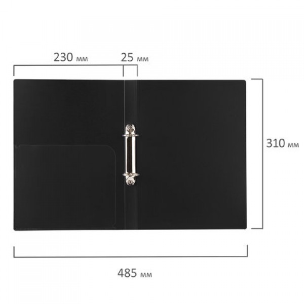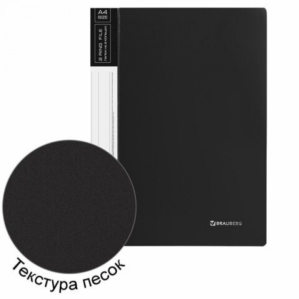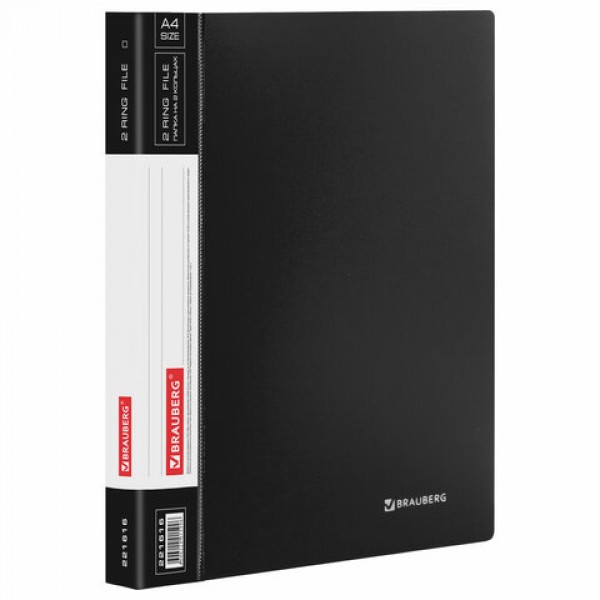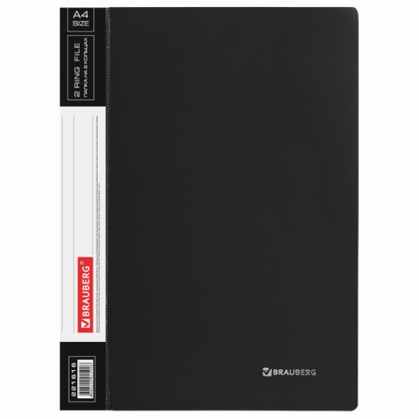 Папка на 2 кольцах BRAUBERG 'Стандарт', 25 мм, черная, до 170 листов, 0,8 мм, 221616