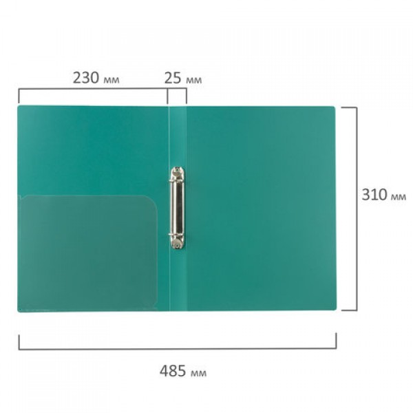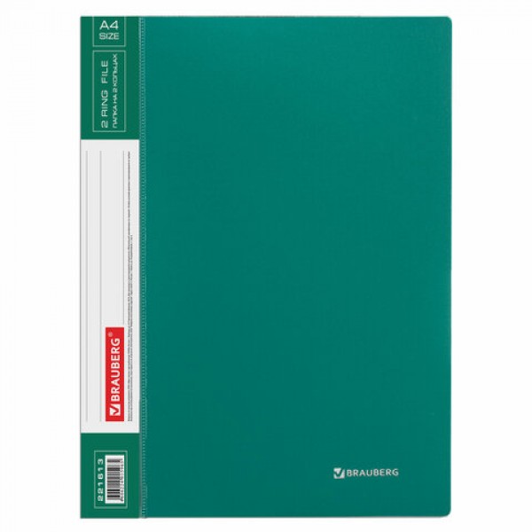 Папка на 2 кольцах BRAUBERG 'Стандарт', 25 мм, зеленая, до 170 листов, 0,8 мм, 221613