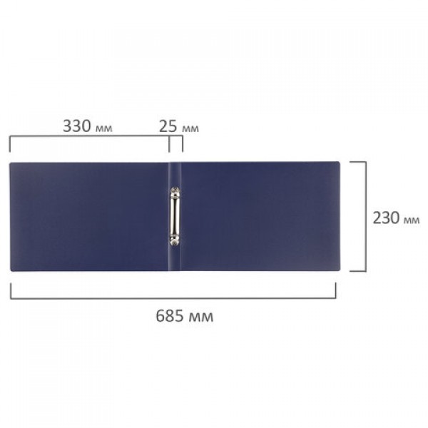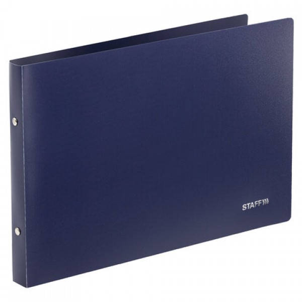 Папка на 2 кольцах ГОРИЗОНТАЛЬНАЯ, А4, 25 мм, до 170 листов, синяя, 0,5 мм, STAFF, 274001