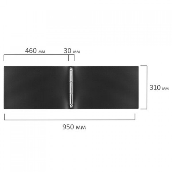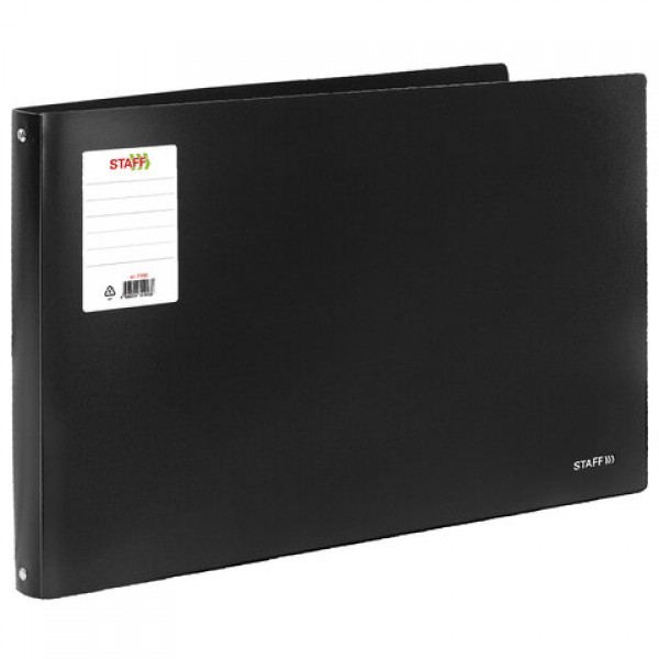 Папка на 4 кольцах БОЛЬШОГО ФОРМАТА А3, ГОРИЗОНТАЛЬНАЯ, 30 мм, до 250 листов, черная, 0,8 мм, STAFF, 274003