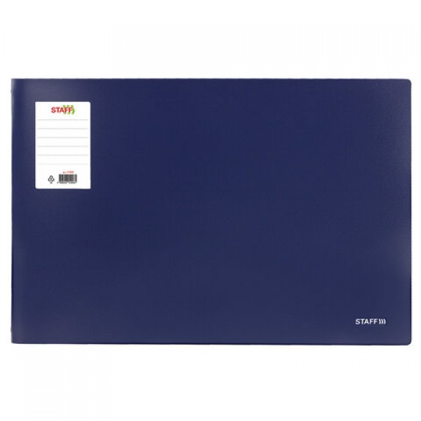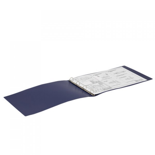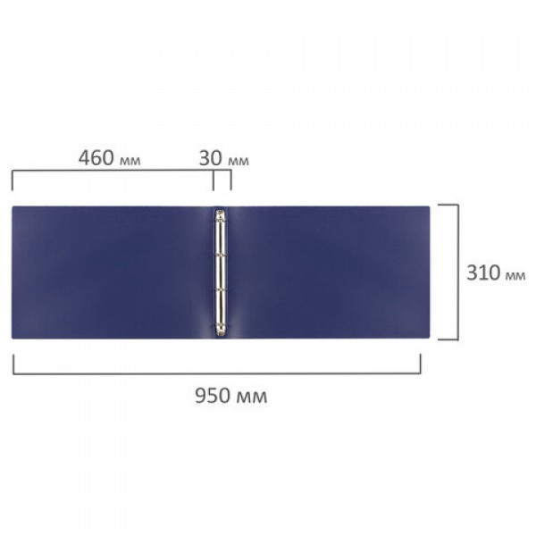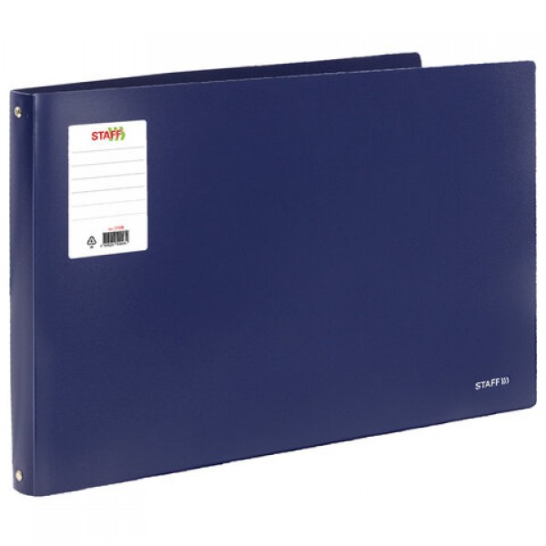 Папка на 4 кольцах БОЛЬШОГО ФОРМАТА А3, ГОРИЗОНТАЛЬНАЯ, 30 мм, до 250 листов, синяя, 0,8 мм, STAFF, 273998