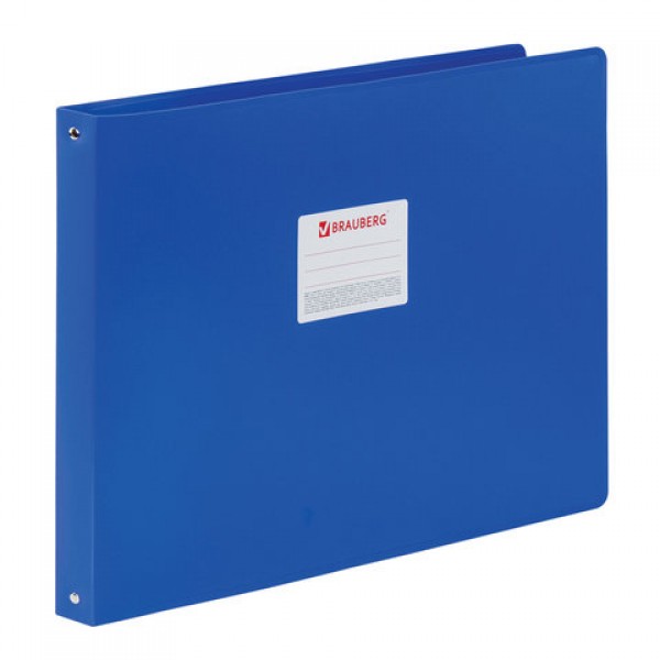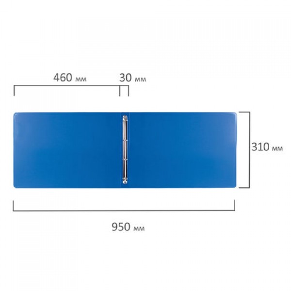 Папка на 4 кольцах БОЛЬШОГО ФОРМАТА А3, ГОРИЗОНТАЛЬНАЯ, 30 мм, синяя, 0,8 мм, BRAUBERG 'Стандарт', 225767