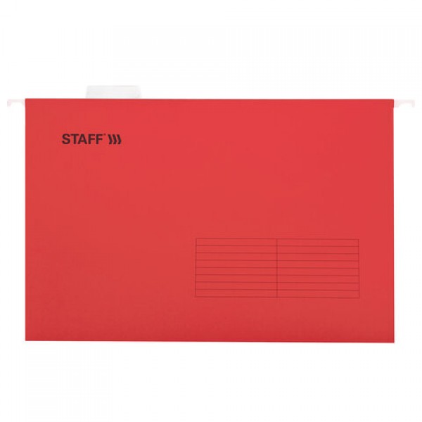 Подвесные папки A4/Foolscap (404х240 мм) до 80 л., КОМПЛЕКТ 10 шт., красные, картон, STAFF, 270936