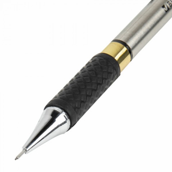 Механический карандаш BRAUBERG "Black Jack" с металлическим корпусом стального цвета и удобным резиновым упором, исключающим скольжение пальцев во время письма.
