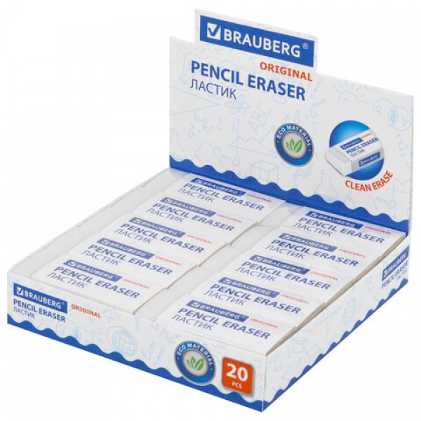 Ластик BRAUBERG "EXTRA" обеспечивает лёгкое и чистое стирание без повреждения поверхности бумаги.