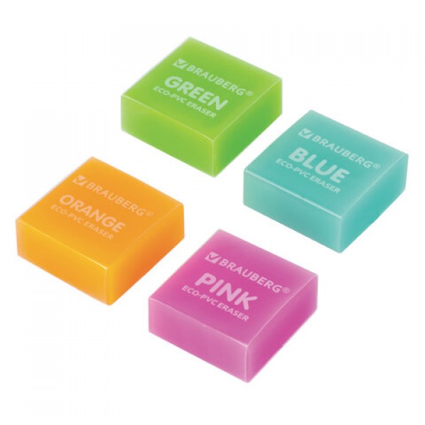 Ластик BRAUBERG 'E-Color', 28х28х12 мм, цвет НЕОН ассорти, экологичный ПВХ, 228065