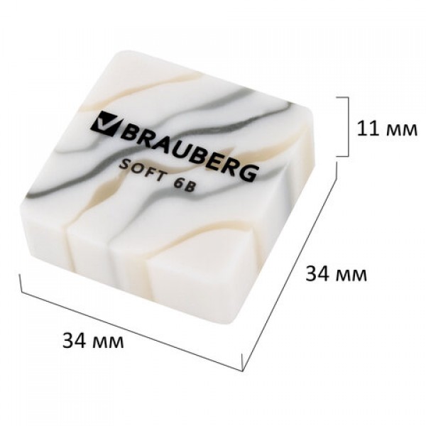 Ластик BRAUBERG "MARBLE" предназначен для удаления надписей, сделанных чернографитным карандашом.