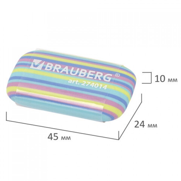 Ластик BRAUBERG 'PASTEL STRIPES', 45х24х10 мм, пастельные цвета ассорти, 274014