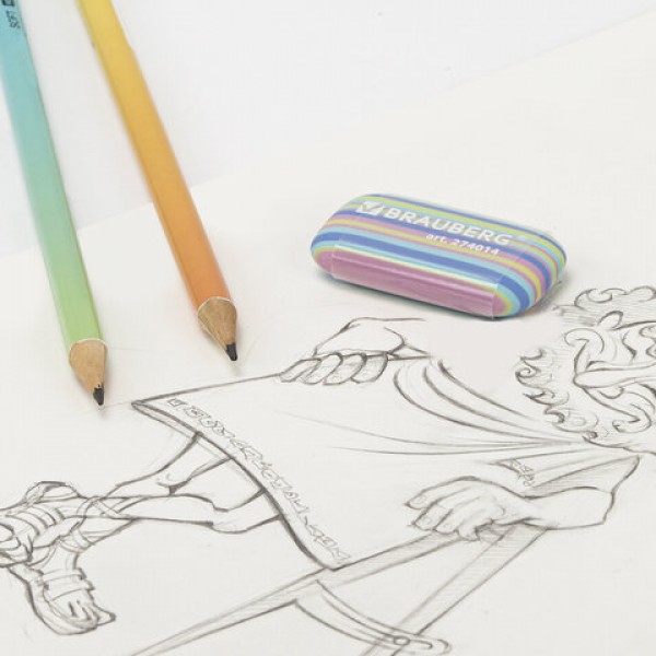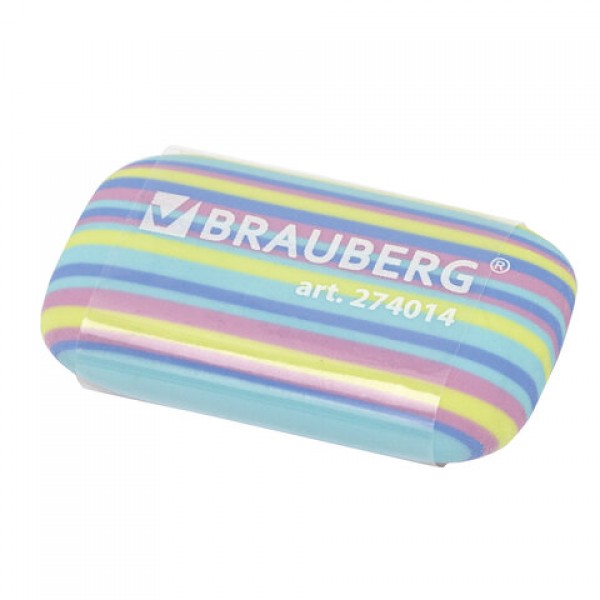 Ластик BRAUBERG "PASTEL STRIPES" предназначен для удаления надписей, сделанных чернографитными карандашами.