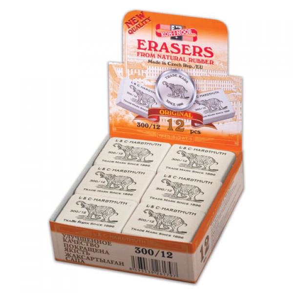 Ластик KOH-I-NOOR 'Слон' 300/12, 48х37х16мм, белый, прямоугольный, натуральный каучук, 0300012002KDRU
