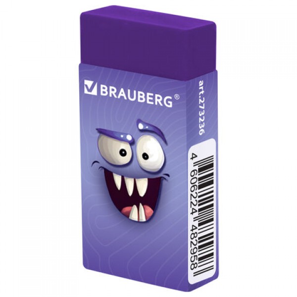 Ластик BRAUBERG CUTE "МОНСТРИКИ" предназначен для удаления надписей, сделанных чернографитным карандашом.