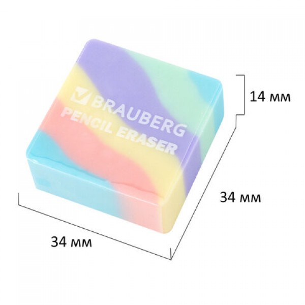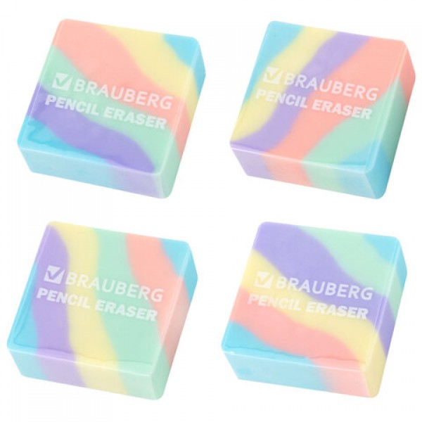 Ластик кросс-серия PASTEL, 34х34х14 мм, квадратный, ассорти, ЭКО ПВХ, BRAUBERG, 273210