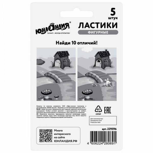 Фигурные ластики ЮНЛАНДИЯ выполнены в форме зайчика и овощей, что позволяет превратить процесс стирания в игру. Подходят для удаления надписей, сделанных чернографитными карандашами.