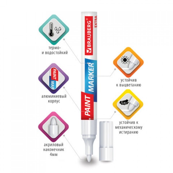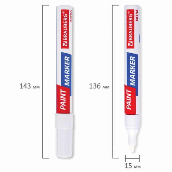 Маркер-краска лаковый BRAUBERG EXTRA предназначен для маркировки на различных поверхностях: бетон, дерево, стекло, металл, резина, пластик как в промышленных, так и в бытовых целях.