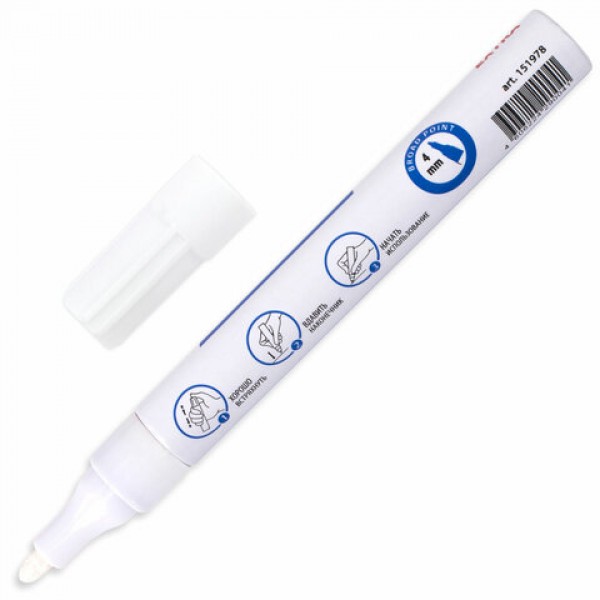 Маркер-краска лаковый EXTRA (paint marker) 4 мм, БЕЛЫЙ, УСИЛЕННАЯ НИТРО-ОСНОВА, BRAUBERG, 151978