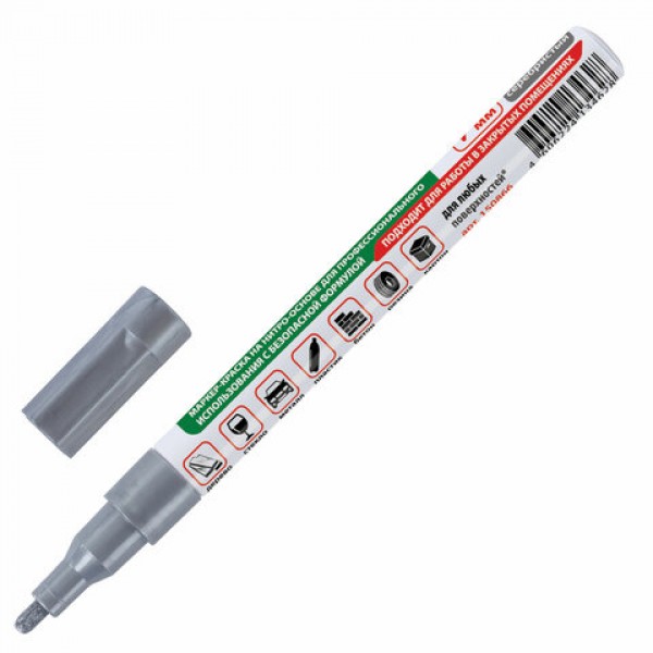 Маркер-краска лаковый BRAUBERG предназначен для маркировки различных материалов в промышленных условиях: бетона, дерева, стекла, металла, резины, пластика. Также подходит для творчества и декорирования.