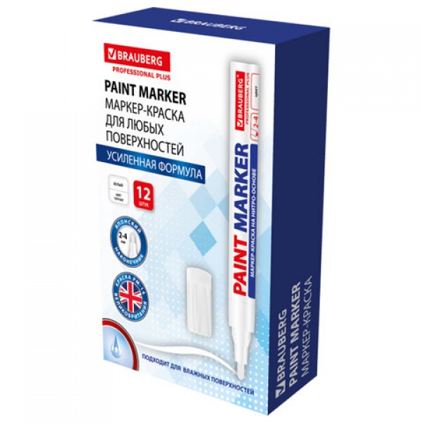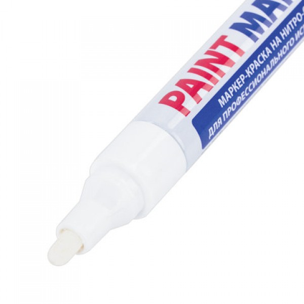 Маркер-краска лаковый (paint marker) 4 мм, БЕЛЫЙ, НИТРО-ОСНОВА, алюминиевый корпус, BRAUBERG PROFESSIONAL PLUS, 151444