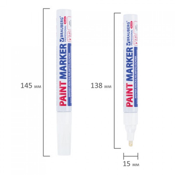 Маркер-краска лаковый BRAUBERG предназначен для маркировки различных материалов в промышленных условиях: бетона, дерева, стекла, металла, резины, пластика. Заправлен краской с усиленной формулой на нитро-основе РМ-14.