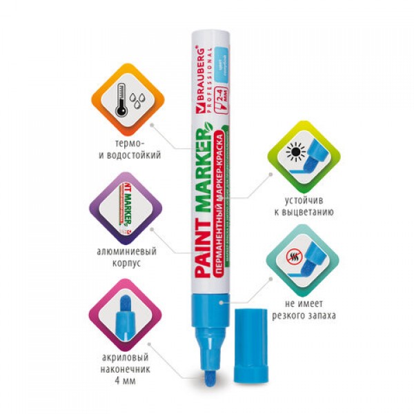 Маркер-краска лаковый (paint marker) 4 мм, ГОЛУБОЙ, БЕЗ КСИЛОЛА (без запаха), алюминий, BRAUBERG PROFESSIONAL, 151435