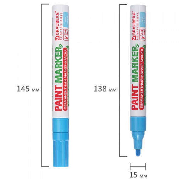 Маркер-краска лаковый BRAUBERG предназначен для маркировки различных материалов в промышленных условиях: бетона, дерева, стекла, металла, резины, пластика. Также подходит для творчества и декорирования.