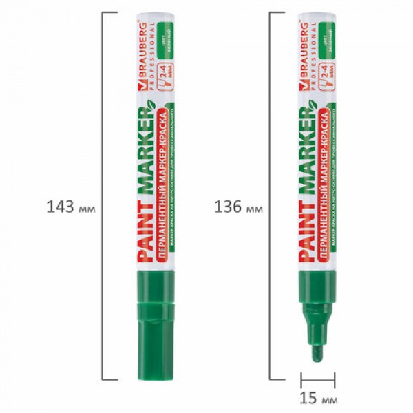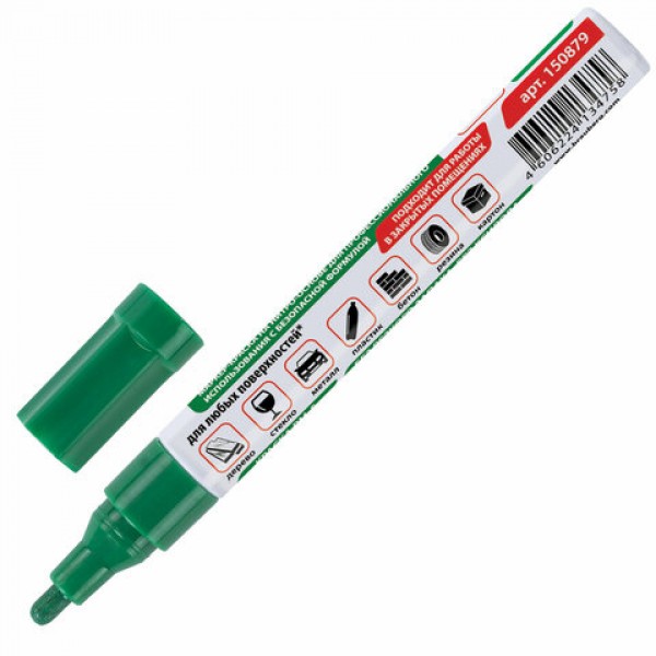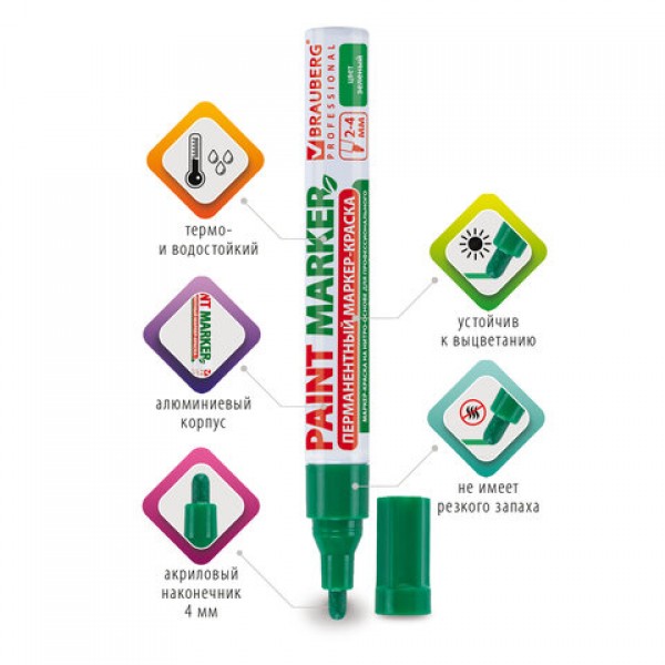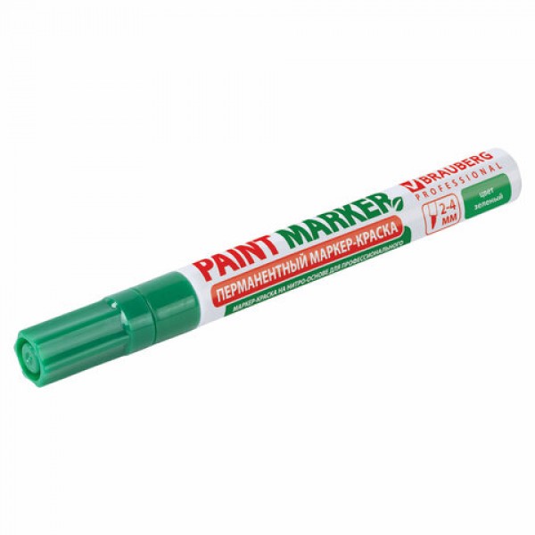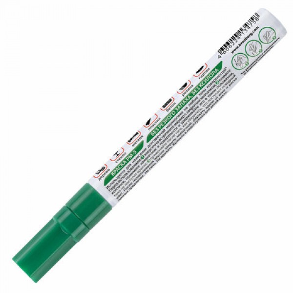 Маркер-краска лаковый (paint marker) 4 мм, ЗЕЛЕНЫЙ, БЕЗ КСИЛОЛА (без запаха), алюминий, BRAUBERG PROFESSIONAL, 150879