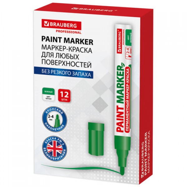 Маркер-краска лаковый BRAUBERG предназначен для маркировки различных материалов в промышленных условиях: бетона, дерева, стекла, металла, резины, пластика. Также подходит для творчества и декорирования.