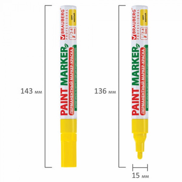 Маркер-краска лаковый BRAUBERG предназначен для маркировки различных материалов в промышленных условиях: бетона, дерева, стекла, металла, резины, пластика. Также подходит для творчества и декорирования.