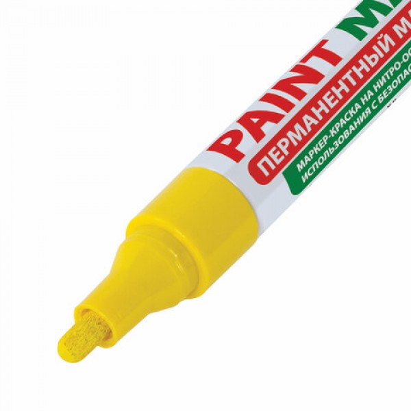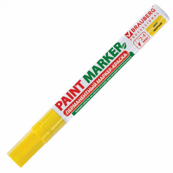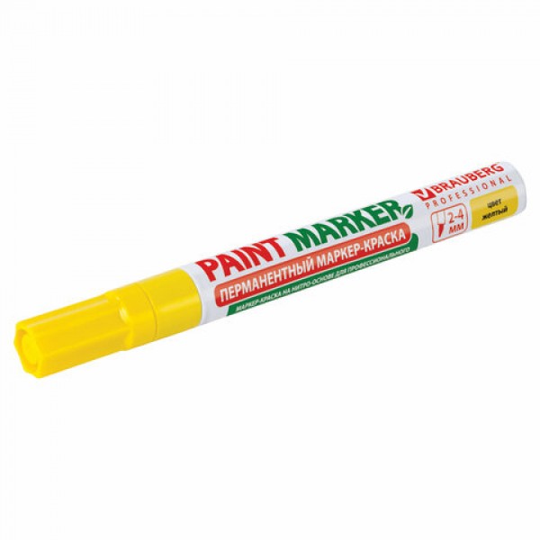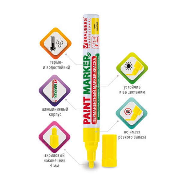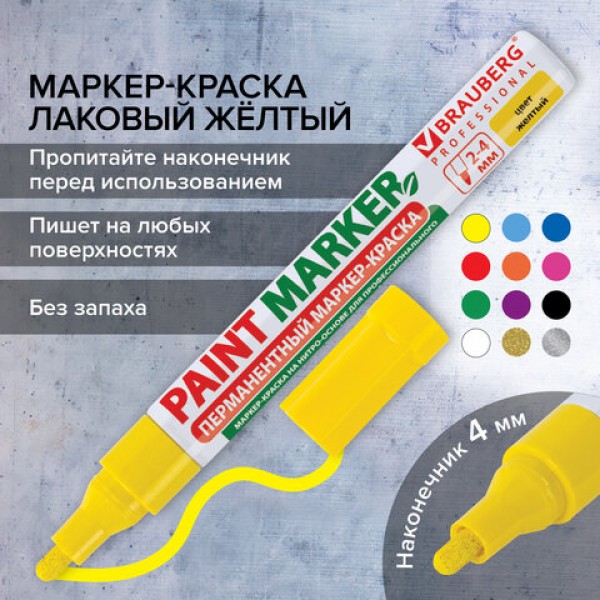Маркер-краска лаковый (paint marker) 4 мм, ЖЕЛТЫЙ, БЕЗ КСИЛОЛА (без запаха), алюминий, BRAUBERG PROFESSIONAL, 150872