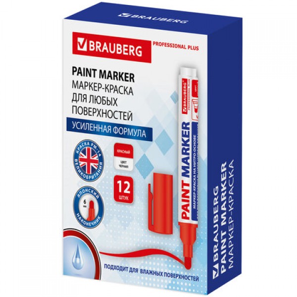 Маркер-краска лаковый (paint marker) 6 мм, КРАСНЫЙ, НИТРО-ОСНОВА, BRAUBERG PROFESSIONAL PLUS EXTRA, 151452