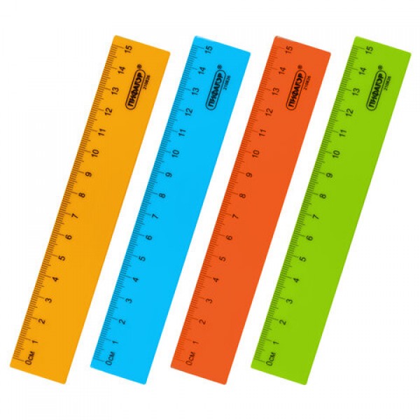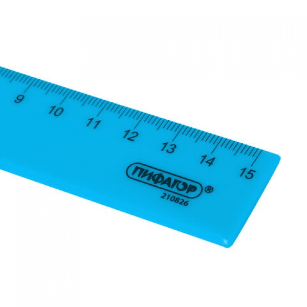 Линейка пластиковая 15 см, ПИФАГОР, неоновая, ассорти, 210826