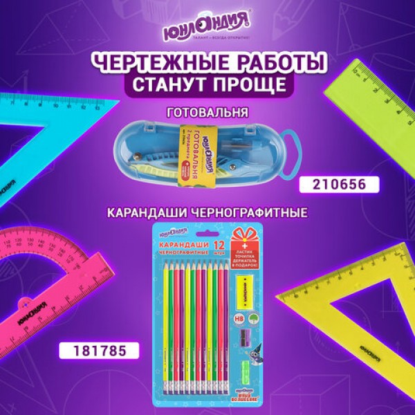 Набор чертежный ЮНЛАНДИЯ "Color" предназначен для выполнения чертежных и измерительных работ.