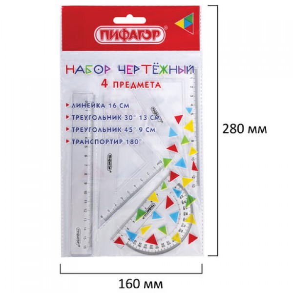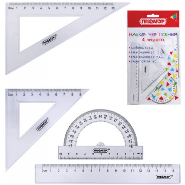 Набор чертежный геометрический ПИФАГОР предназначен для выполнения чертежных работ.