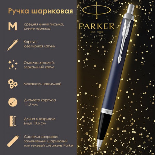 Ручка шариковая PARKER 'IM Core Matte Blue CT', корпус темно-синий лак, хромированные детали, синяя, 1931668