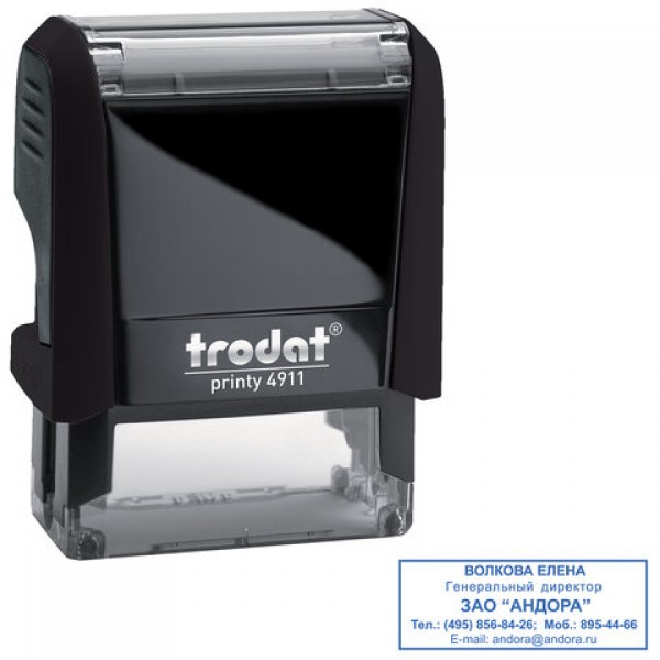 Автоматическая оснастка TRODAT предназначена для наклеивания на нее клише штампа, факсимиле и другой символики. Окрашивание клише и постановка оттиска происходит автоматически при нажатии на оснастку.