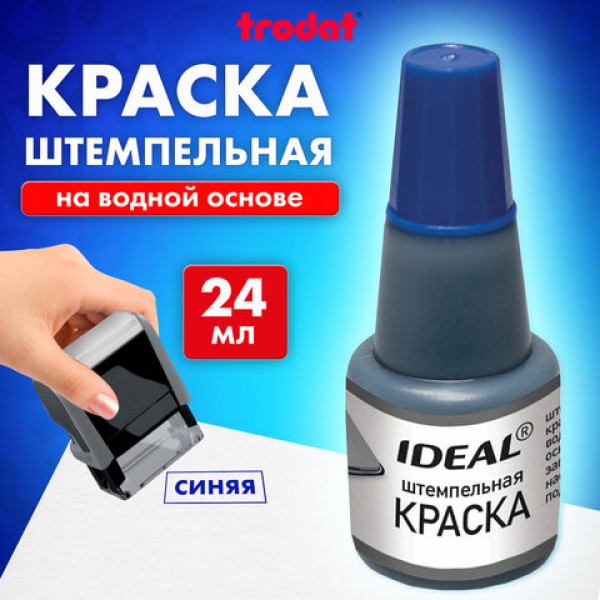 Краска штемпельная TRODAT IDEAL, синяя, 24 мл, на водной основе, 7711с, 153079