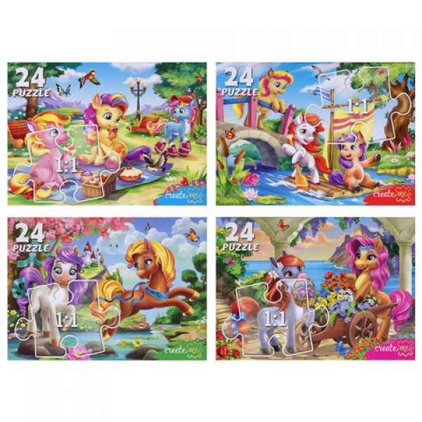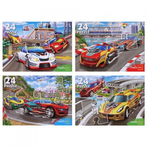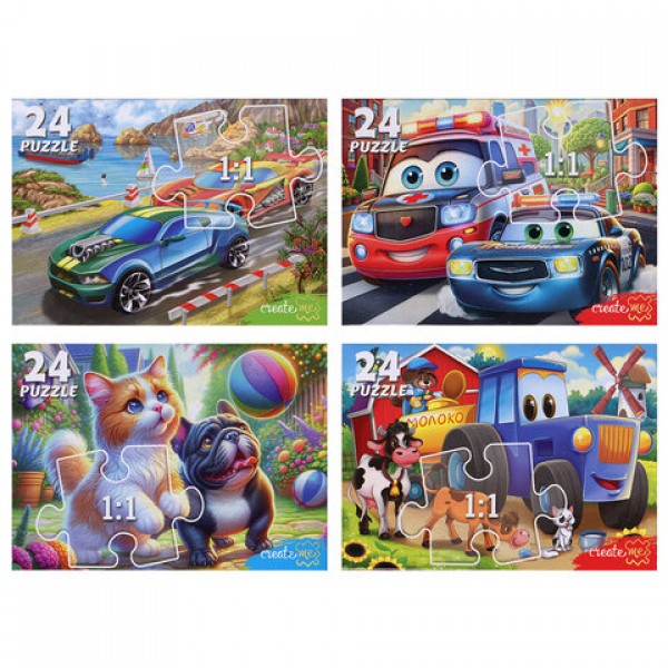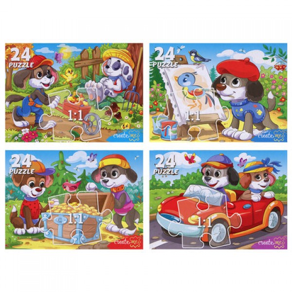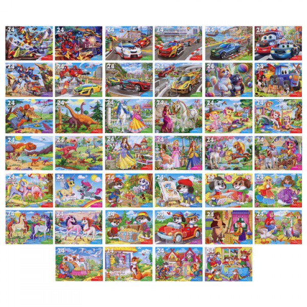 Пазлы картонные 24 элемента, КОМПЛЕКТ 40 шт., поле 17,5 х 13 см, РК