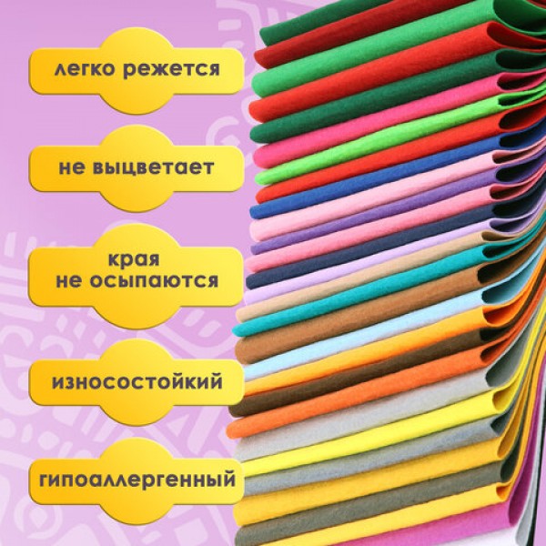 Цветной фетр ОСТРОВ СОКРОВИЩ предназначен для создания ярких творческих поделок дома, в школе или в детском саду. Используется для создания аппликаций и вышивки, легко режется и приклеивается на ровную поверхность.