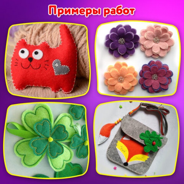 Цветной фетр ЮНЛАНДИЯ предназначен для создания ярких творческих поделок дома, в школе и в детском саду. Используется для создания аппликаций и вышивания, легко режется и приклеивается на ровную поверхность.