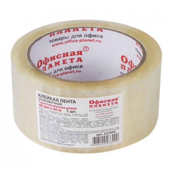 Клейкая лента упаковочная, 48 мм х 66 м прозрачная, толщина 45 микрон, ОФИСНАЯ ПЛАНЕТА, 222404