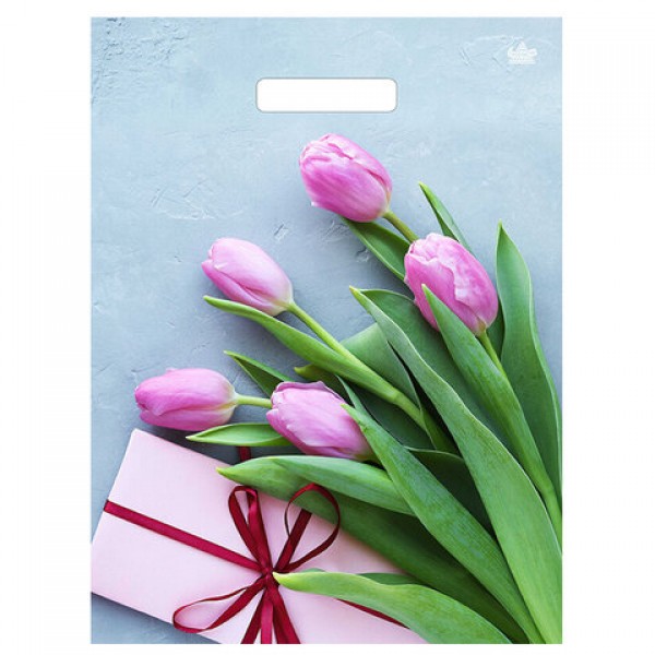 Пакет с вырубной ручкой ПВД, 40х31 см, 'Тюльпаны', 60 мкм, н00212987
