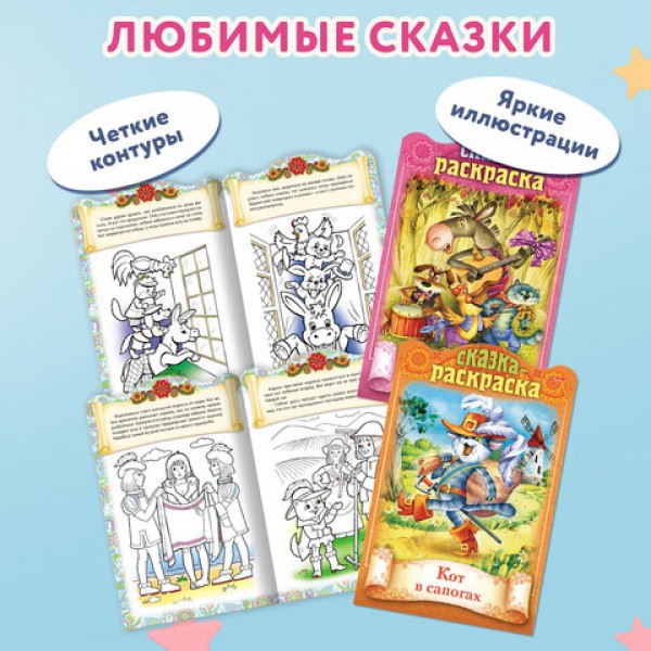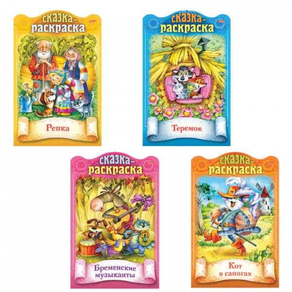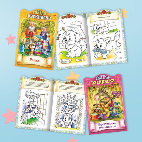 Раскраски детские 'Сказки детям', КОМПЛЕКТ 4 шт., А4, 16 стр., HATBER