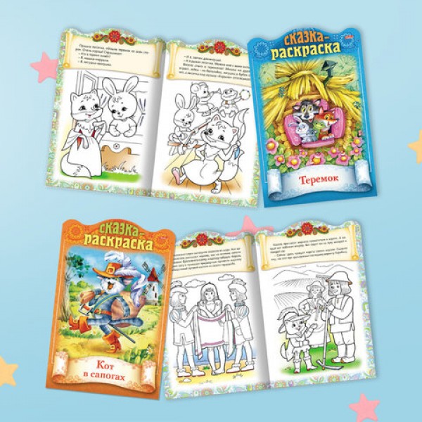 Книжки-раскраски серии "Сказки детям" подарят ребёнку возможность самому раскрасить любимую сказку и её героев. Маленький художник будет в восторге.