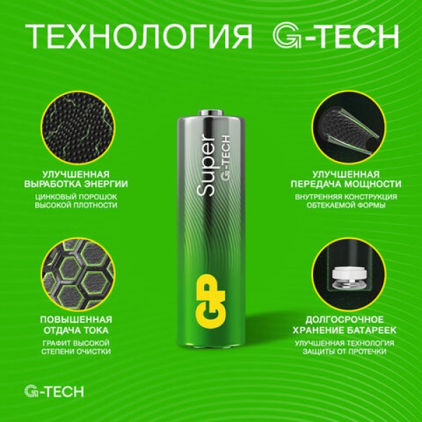 Батарейки GP Super Alkaline изготавливаются по новой формуле для более надежной и продолжительной работы устройств с высоким потреблением энергии.