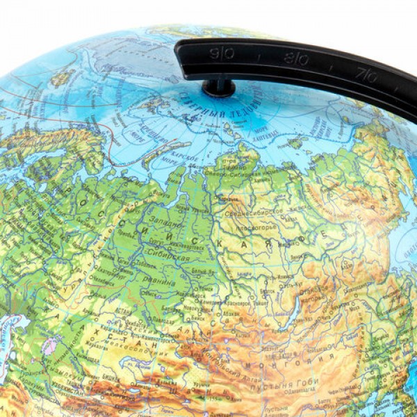 Глобус позволит ознакомиться с физической картой мира. Подходит для использования в детских садах и школах. Поможет узнать рельеф земной поверхности, абсолютные глубины океанов, найти самые высокие и самые глубокие места планеты.