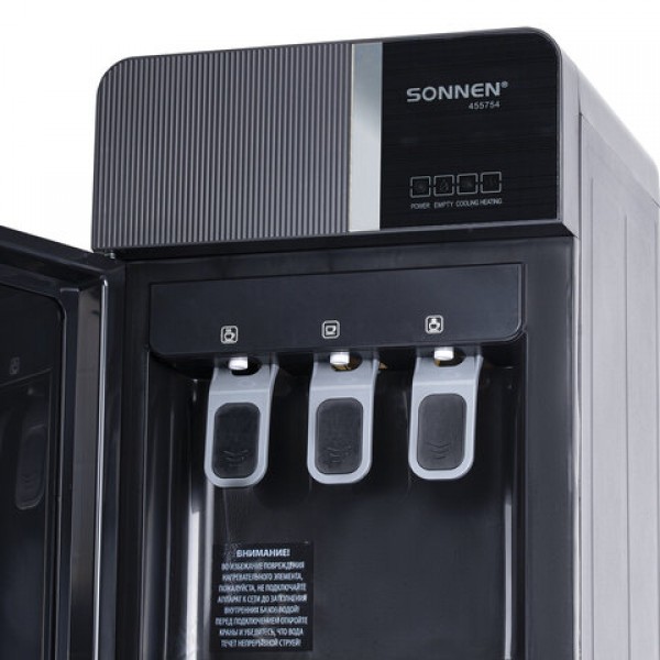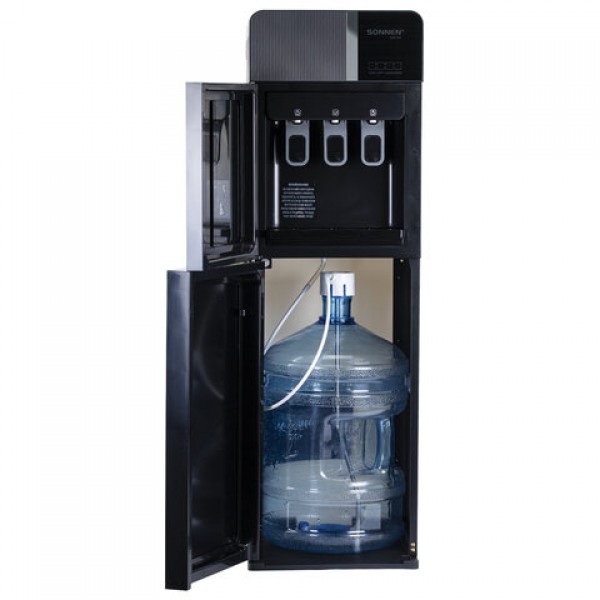 Кулер для воды SONNEN FSE-03BR, напольный, нагрев/охлаждение электронное, НИЖНЯЯ ЗАГРУЗКА, 3 крана, черный, 455754