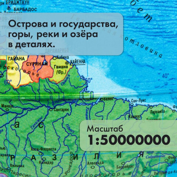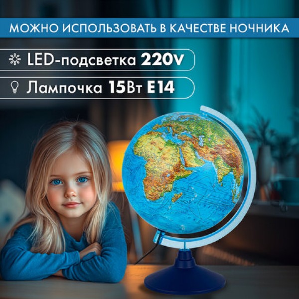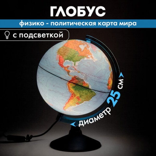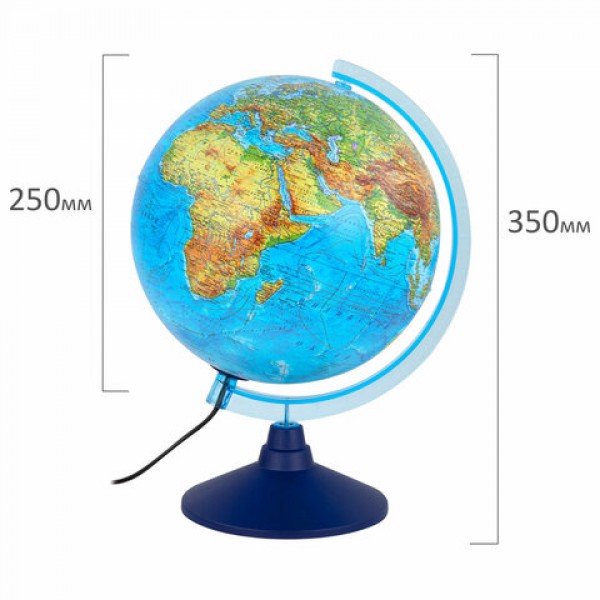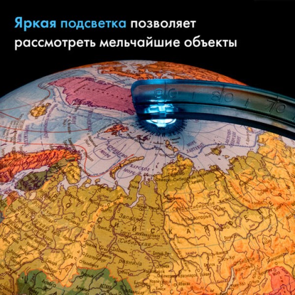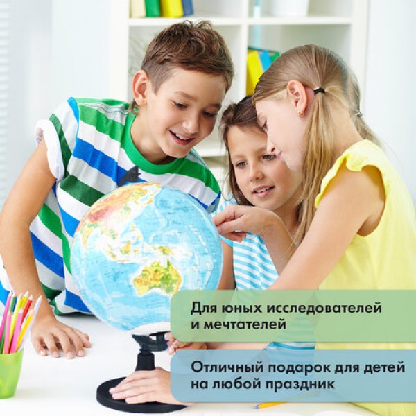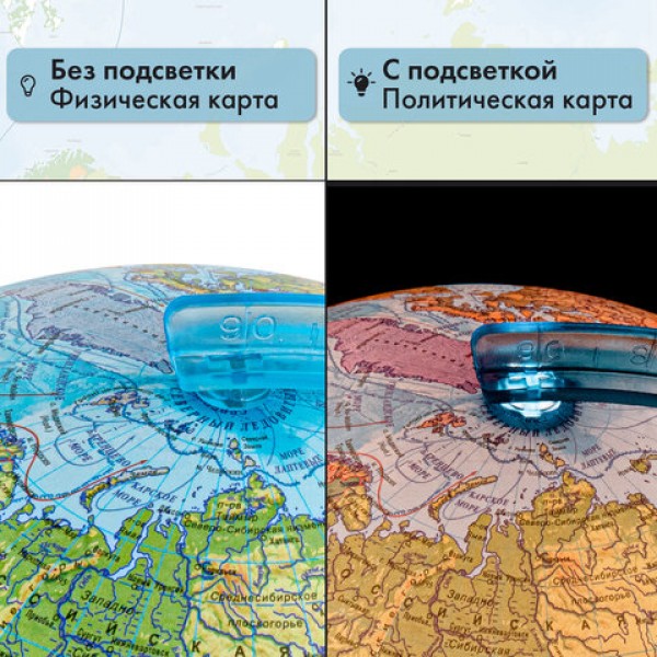 Глобус позволит ознакомиться с физической и политической картой мира. Подходит для использования в детских садах и школах. Поможет узнать об организационно-правовом (политическом) укладе территорий и рельефе земной поверхности.
